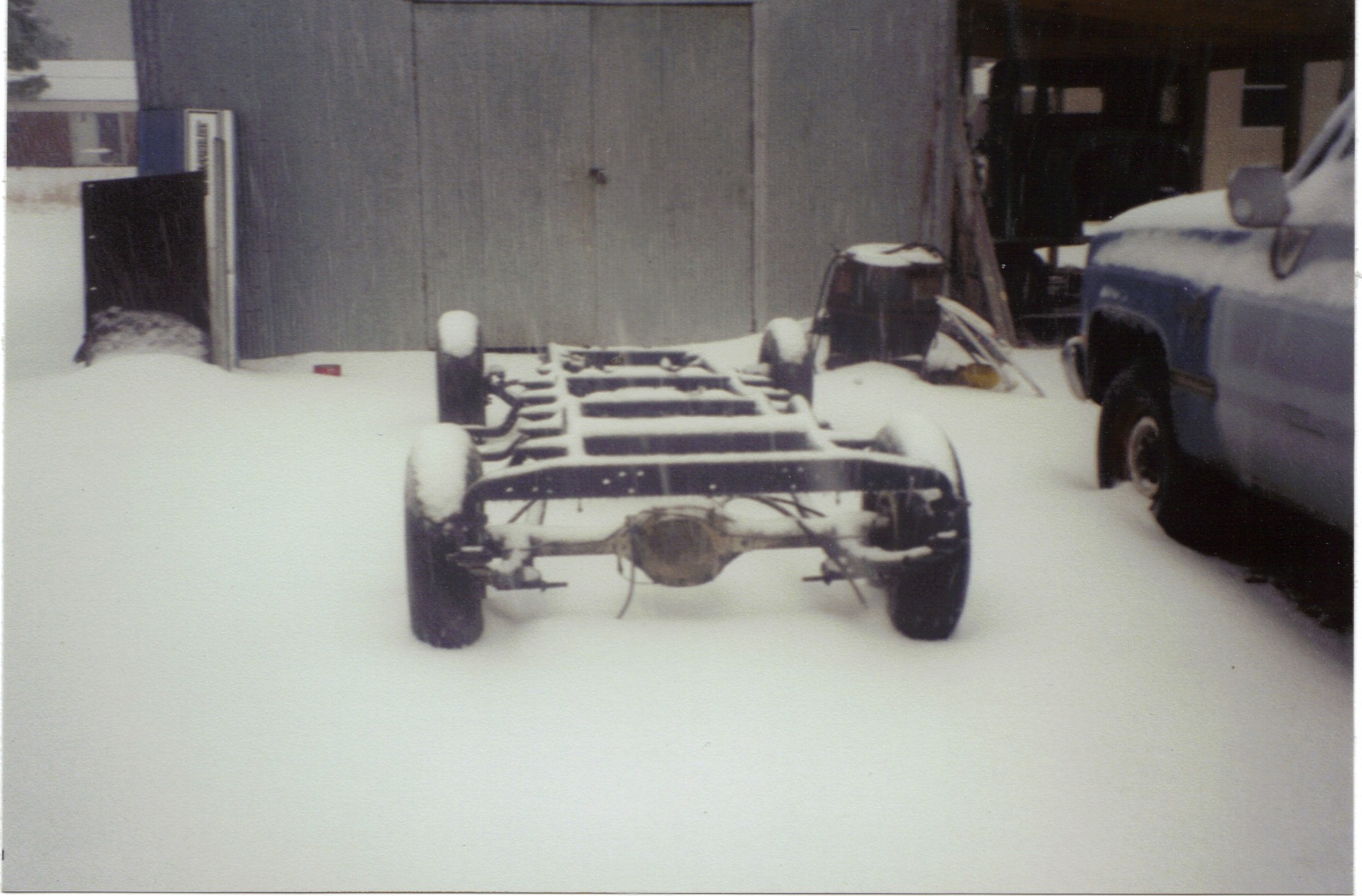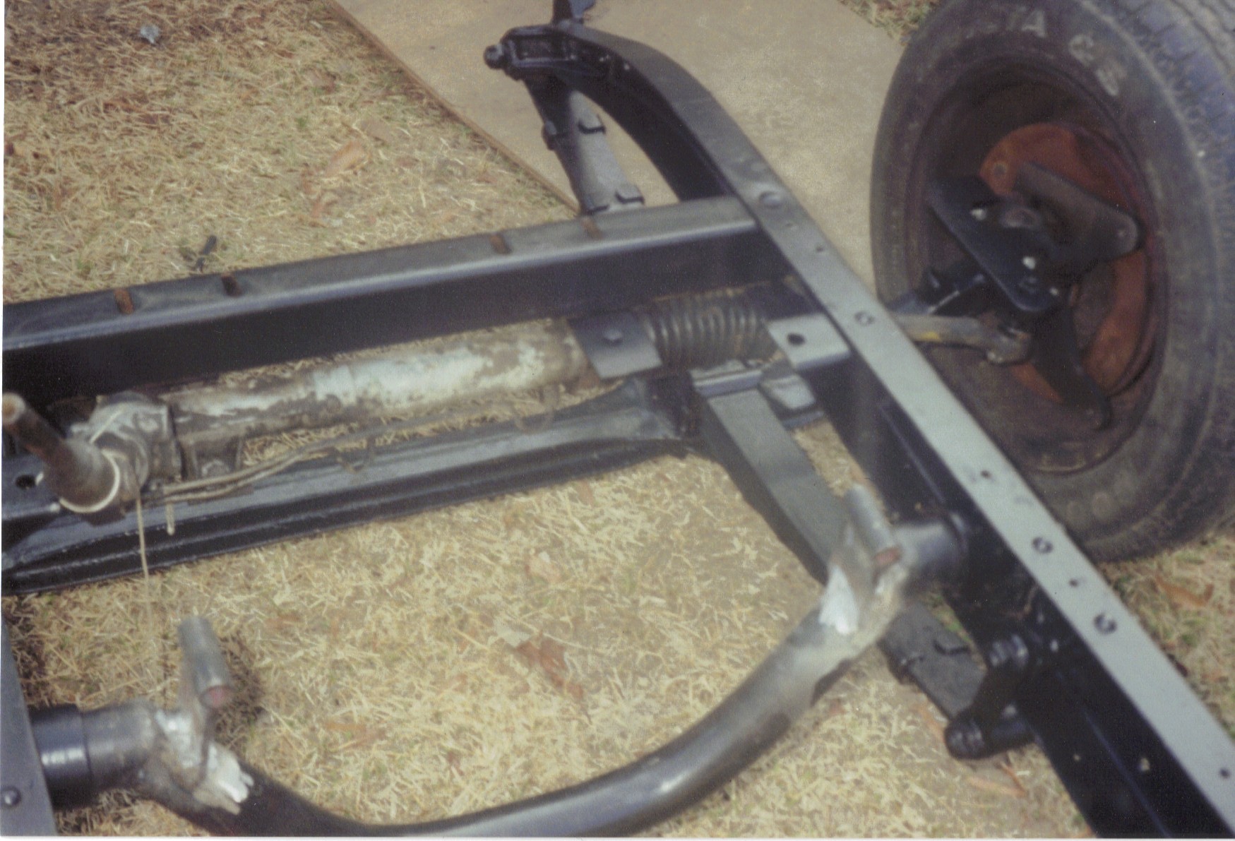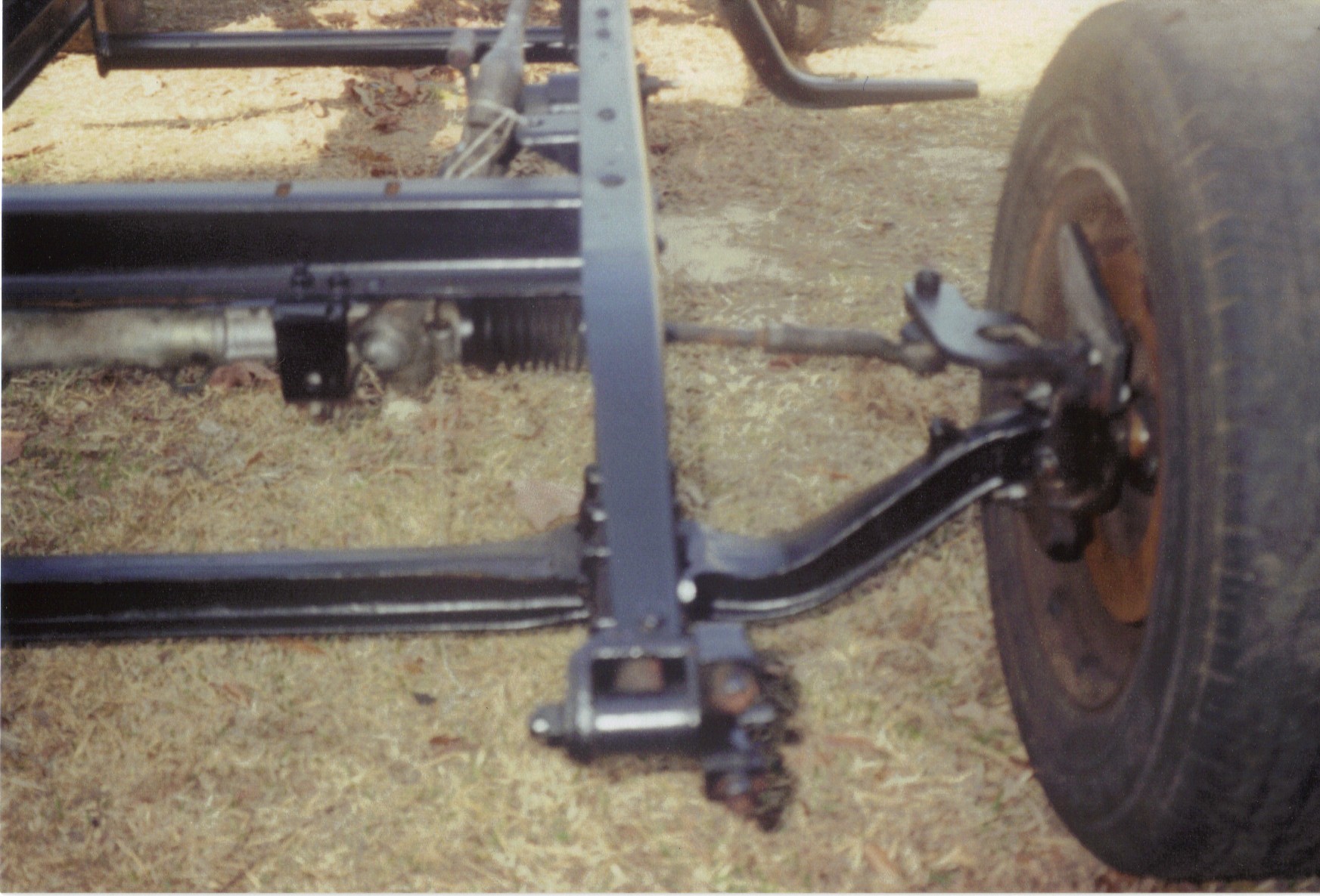 The front axle is about 4 inches wider than the S10 rear. But the Camaro rear axle fixed that. I haven’t found them pictures yet. The transmission mount is a simple pipe mounted with flat bar to the frame with the trans mount bolted directly to the pipe cross member. It’s worked great for the last five years. |