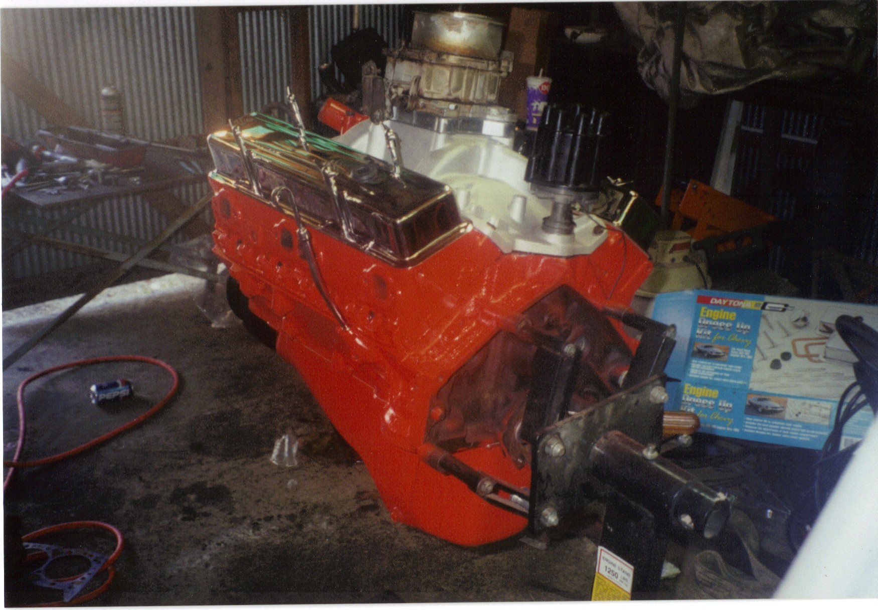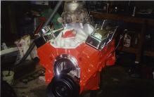 The engine is a 1971 350 along with the th350 transmission from a 1971 1 ton Chevy RV Chassis. It’s a four bolt main. I added an Melling MTC1 cam and and Edelbrock manifold and a few other goodies, mostly for looks. The carb in the pic is the original carb. I replaced it with an Edelbrock 600cfm a few months later. |